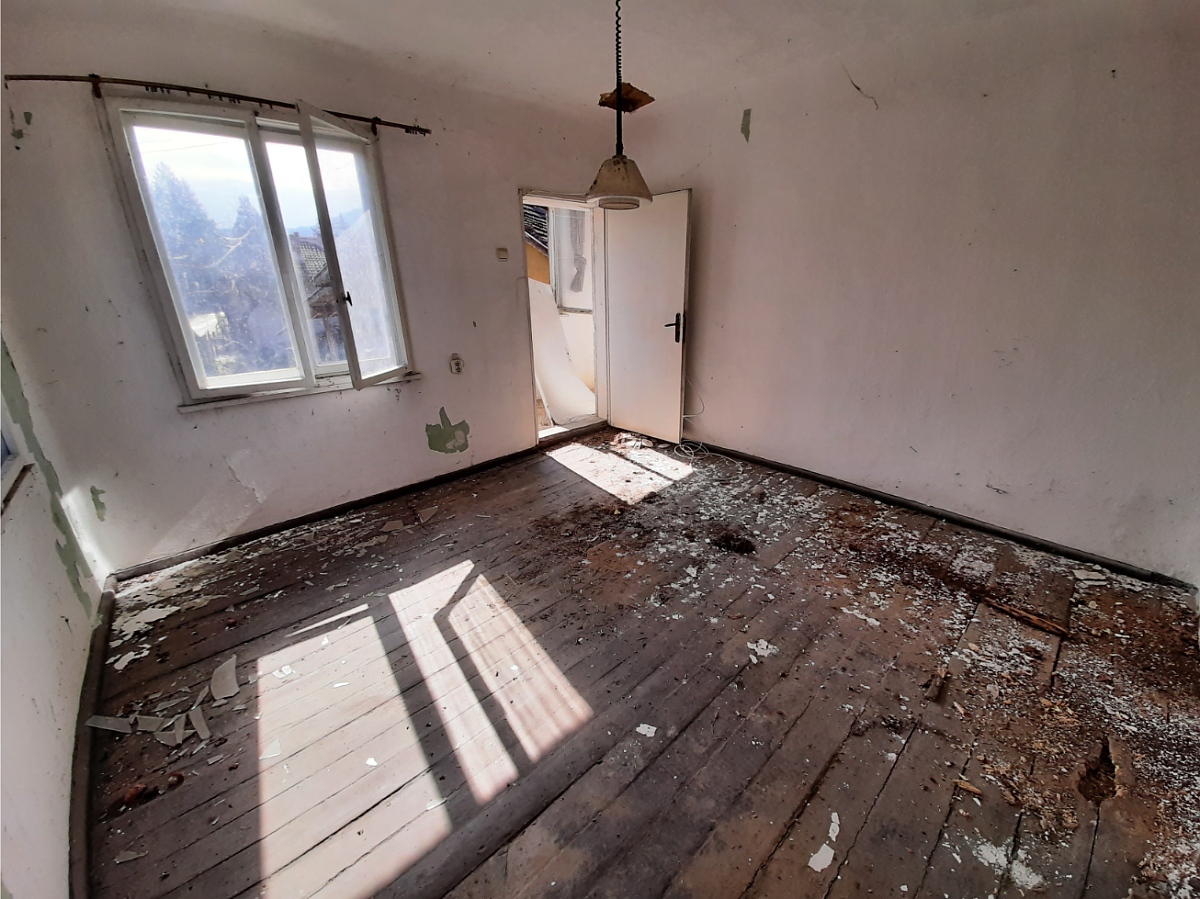 Old country house with plot of land situated in a quiet village in the mountains about 40 km away from Montana, Bulgaria. The property is not far away from the center of the village, a small shop and river. The house has two floors connected via short external staircase. The ground level holds lobby, two rooms and premise which used to be a shower room. The second floor consists of terrace and two rooms. The house had been empty for many years now and requires certain amount of repairs and renovations in order to be brought back to modern day living standards but offers a reasonable “good money for what you get” ratio. The property borders the main street of the village and also a dirt road at the back. Behind the dirt road is the river. The area is surrounded by mountains and forest and provides lots of peace, quiet and fresh air all year round. Most of the houses around are used primarily from spring till autumn. The nearest town is the regional center Montana which is within about half an hour drive away from here. There one can find many shops, bars, restaurants, general hospital, bus and train links to the national capital Sofia, schools and kindergartens, police station, fire station, car service stations, library, museum, cinema, etc. The national capital city Sofia and Sofia International airport are just over two hours of driving away from here. An old rural property with lots of potential at a fair price.