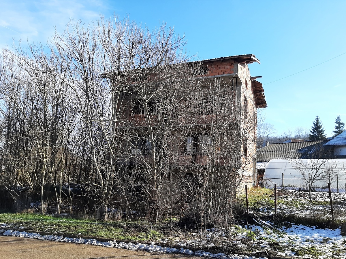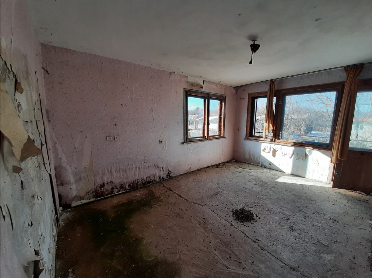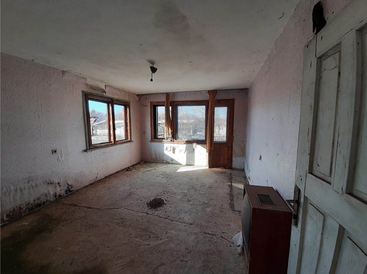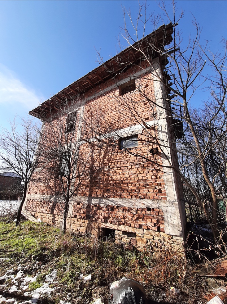 Rural property with land, private water source, good road access and nice views situated in a village 15 km away from spa resort town in the Northwest of Bulgaria. The house has three floors and attic space which can also be converted into living area. The ground level holds two garages which can be entered from the street passing in front of the property. The first floor has corridor which connects three rooms designed to be bathroom with toilet, kitchen with dining area and living room. A wide, long terrace situated at the front side of the house also serves as connection between the kitchen and the living room. Over the solid internal staircase one can go to the second floor which has the same layout as downstairs and consists of premise for bathroom and toilet, two bedrooms and corridor. A terrace serves as additional connection between the bedrooms and provides nice views from here towards the distant mountain peaks and the surrounding neighborhood. The attic holds one very big premise which can be transformed into a spacious lounge or two small, additional bedrooms. The property consists of the house and a partially overgrown plot of land. Some of the garden is currently in good condition as it is maintained and used by the neighbors. This section holds the fresh water well. The other half of the yard is overgrown and needs clearing. The house is situated within the limits of the village and is close to the main road. There is also a small grocery store not far away. The village is relatively small and quiet. It is surrounded by a mixture of forest, fields and small hills thus providing conditions for various outdoor activities such as cycling, wildlife photography, hunting, etc. The regional capital city of the area Vratsa is about 25 km away from the property while the nearest town Varshets is at about 15 km distance. Varshets is the oldest spa resort town in Bulgaria and provides good conditions for health recovery procedures, relaxation or just a spa weekend escape away from the busy cities and offices. The property can be reached by car within about two hours of driving from Sofia and Sofia International Airport. Rural house with yard, private water source, nice views and good location waiting for new owners.