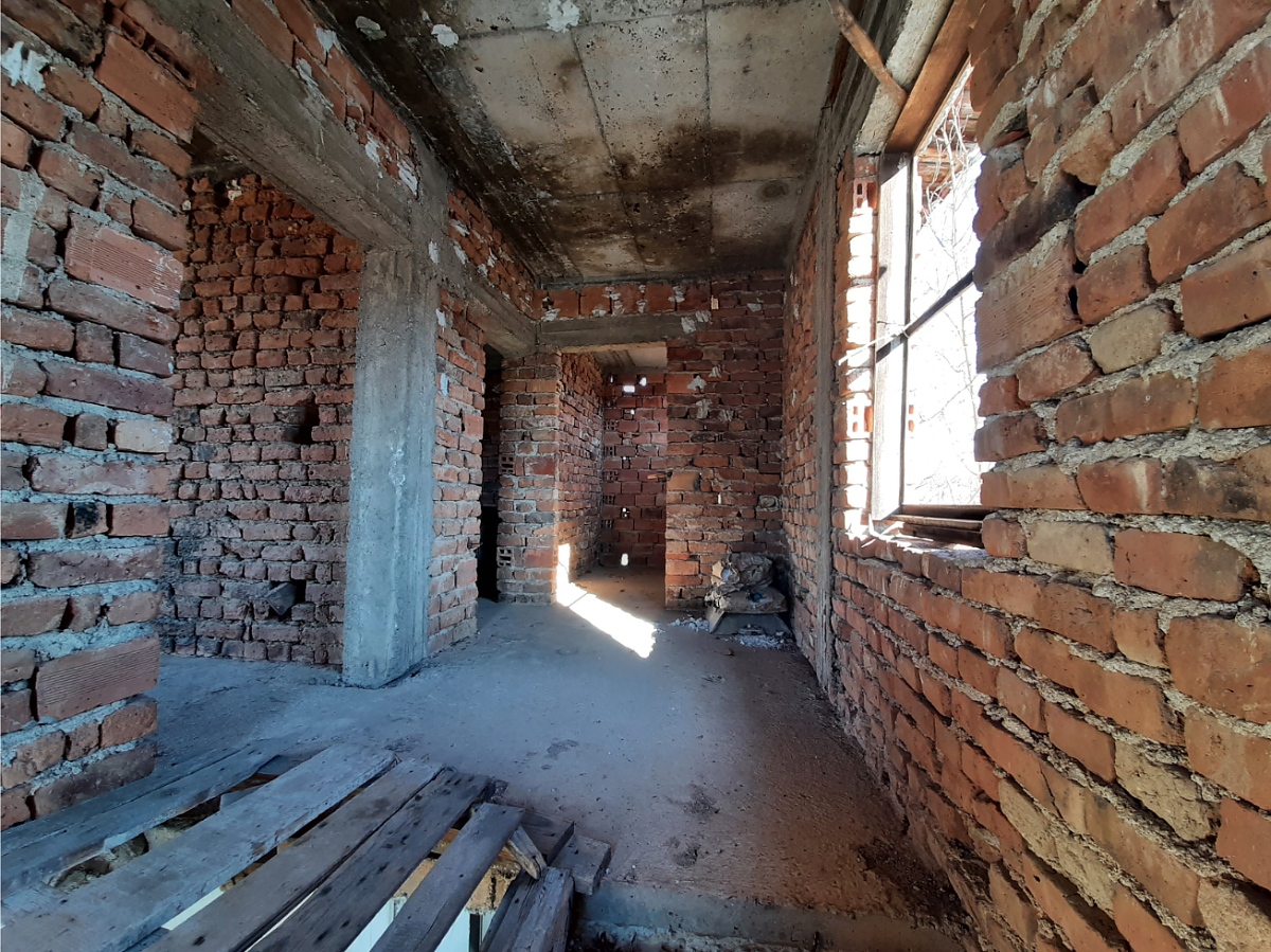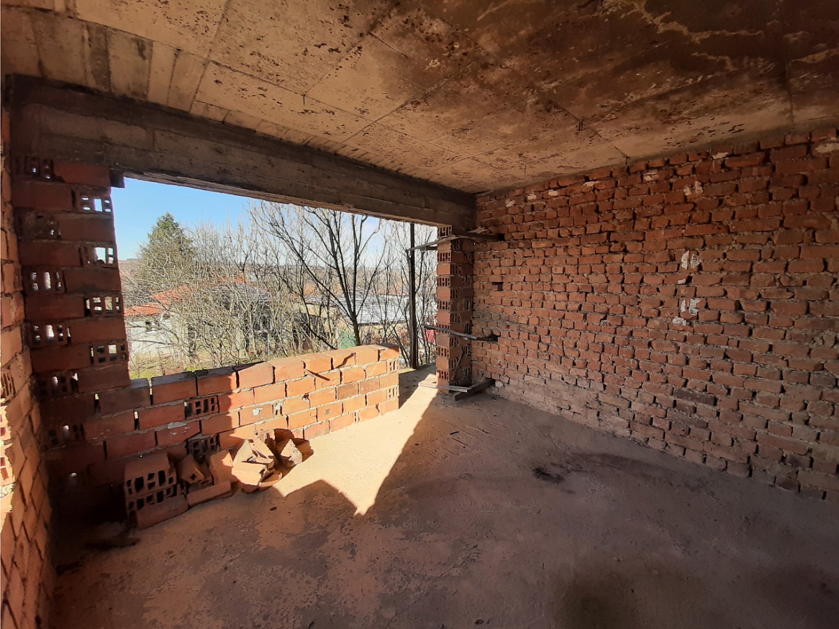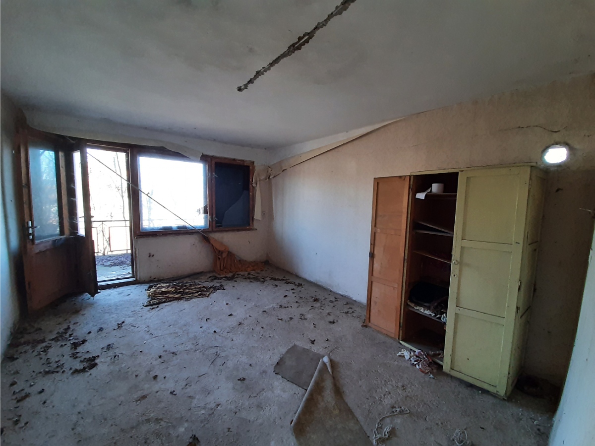 Rural property with land, private water source, good road access and nice views situated in a village 15 km away from spa resort town in the Northwest of Bulgaria. The house has three floors and attic space which can also be converted into living area. The ground level holds two garages which can be entered from the street passing in front of the property. The first floor has corridor which connects three rooms designed to be bathroom with toilet, kitchen with dining area and living room. A wide, long terrace situated at the front side of the house also serves as connection between the kitchen and the living room. Over the solid internal staircase one can go to the second floor which has the same layout as downstairs and consists of premise for bathroom and toilet, two bedrooms and corridor. A terrace serves as additional connection between the bedrooms and provides nice views from here towards the distant mountain peaks and the surrounding neighborhood. The attic holds one very big premise which can be transformed into a spacious lounge or two small, additional bedrooms. The property consists of the house and a partially overgrown plot of land. Some of the garden is currently in good condition as it is maintained and used by the neighbors. This section holds the fresh water well. The other half of the yard is overgrown and needs clearing. The house is situated within the limits of the village and is close to the main road. There is also a small grocery store not far away. The village is relatively small and quiet. It is surrounded by a mixture of forest, fields and small hills thus providing conditions for various outdoor activities such as cycling, wildlife photography, hunting, etc. The regional capital city of the area Vratsa is about 25 km away from the property while the nearest town Varshets is at about 15 km distance. Varshets is the oldest spa resort town in Bulgaria and provides good conditions for health recovery procedures, relaxation or just a spa weekend escape away from the busy cities and offices. The property can be reached by car within about two hours of driving from Sofia and Sofia International Airport. Rural house with yard, private water source, nice views and good location waiting for new owners.