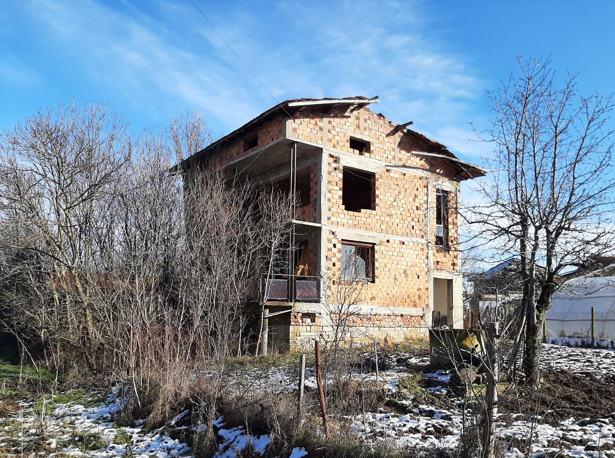Rural property with land, private water source, good road access and nice views situated in a village 15 km away from spa resort town in the Northwest of Bulgaria. The house has three floors and attic space which can also be converted into living area. The ground level holds two garages which can be entered from the street passing in front of the property. The first floor has corridor which connects three rooms designed to be bathroom with toilet, kitchen with dining area and living room. A wide, long terrace situated at the front side of the house also serves as connection between the kitchen and the living room. Over the solid internal staircase one can go to the second floor which has the same layout as downstairs and consists of premise for bathroom and toilet, two bedrooms and corridor. A terrace serves as additional connection between the bedrooms and provides nice views from here towards the distant mountain peaks and the surrounding neighborhood. The attic holds one very big premise which can be transformed into a spacious lounge or two small, additional bedrooms. The property consists of the house and a partially overgrown plot of land. Some of the garden is currently in good condition as it is maintained and used by the neighbors. This section holds the fresh water well. The other half of the yard is overgrown and needs clearing. The house is situated within the limits of the village and is close to the main road. There is also a small grocery store not far away. The village is relatively small and quiet. It is surrounded by a mixture of forest, fields and small hills thus providing conditions for various outdoor activities such as cycling, wildlife photography, hunting, etc. The regional capital city of the area Vratsa is about 25 km away from the property while the nearest town Varshets is at about 15 km distance. Varshets is the oldest spa resort town in Bulgaria and provides good conditions for health recovery procedures, relaxation or just a spa weekend escape away from the busy cities and offices. The property can be reached by car within about two hours of driving from Sofia and Sofia International Airport. Rural house with yard, private water source, nice views and good location waiting for new owners.